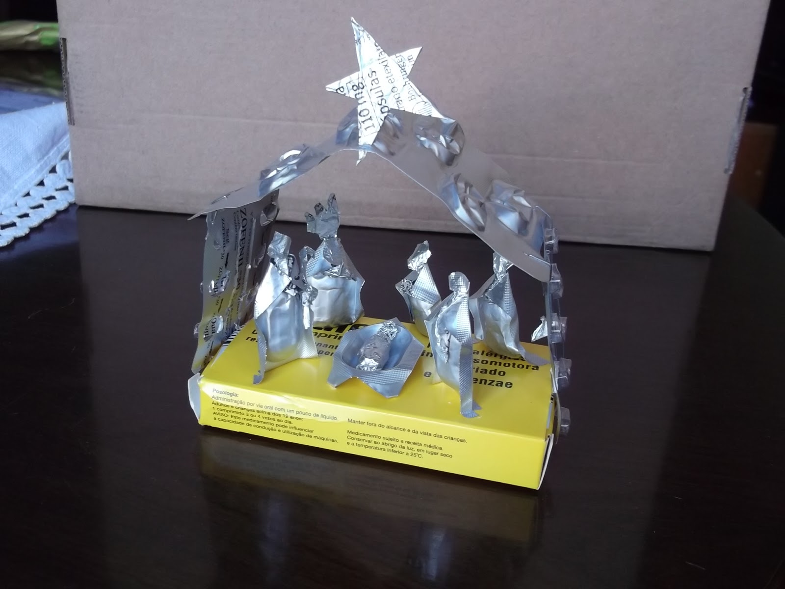 Este ano a minha escolha recaiu neste presépio da minha querida amiga homónima que muito admiro. O material escolhido gratuito em tempos de crise. Faz inveja a tantos outros carrérrimos!Acreditam que não sinto nada...não vejo vaivém de gentes pelas ruas pouco engalanadas, outras nuas, noites frias sem luzes a cintilar, onde está a música e pais natais!