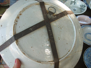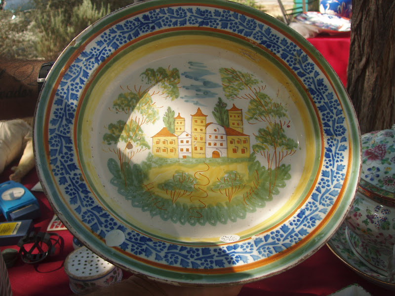 Impecável que ainda não sei como a vendi no mesmo dia...era para a minha coleção, mas os clientes transmitiram uma empatia que foi difícil resistir, senti logo uma infinita tristeza de a ver ir embora - tão amante que sou deste motivo . Se eu estivesse no lugar deles também ficaria radiante de a levar comigo - é este sentido de partilha - no caso venda que nos engrandece. Um casal amoroso .Vai para o Algarve....daqui a décadas voltará a falar-se dela e alguém vai questionar como uma faiança de Coimbra desceu aos Algarves...hoje tudo se movimenta entre bancas , colegas e compradores... com uma rapidez fenomenal.Passado um mês reencontrei a senhora numa inauguração de uma lojinha de chocolates na Avª da Républica, no imediato não me reconheceu por estar vestida à senhora...logo pronunciou o meu nome, estava com a filha de esperanças, disse-lhe "esta senhora é que me vendeu a travessa que vocês tanto gostaram e afinal não foi para o Algarve ficou cá...olhe que li o seu blog!"