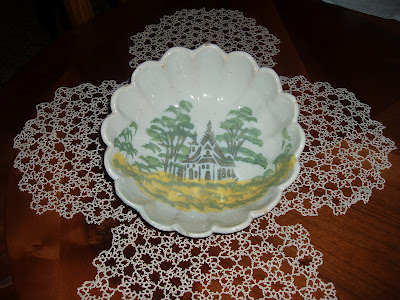 Travessa de faiança fina comprada na feira de Torres Novas. Intrigou-me logo a sua atribuição pela exuberante decoração em tons rosa e verde da aba com filete azul claro a debruar o rebordo e ramo de flores ao centro em policromia da barra.Outro pormenor que me chamou a atenção do esmalte transparece um vidrado ligeiro em tom esverdeado quer na frente quer no tardoz em jeito de lista na travessa de alto a baixo ao meio no tardoz e, na frente junto ao motivo central - rapidamente identifiquei noutras peças que aqui mostro - o que pode provar que todas tiveram origem no mesmo centro oleiro onde a técnica do vidrado do esmalte era diferente da normal - translúcida.
