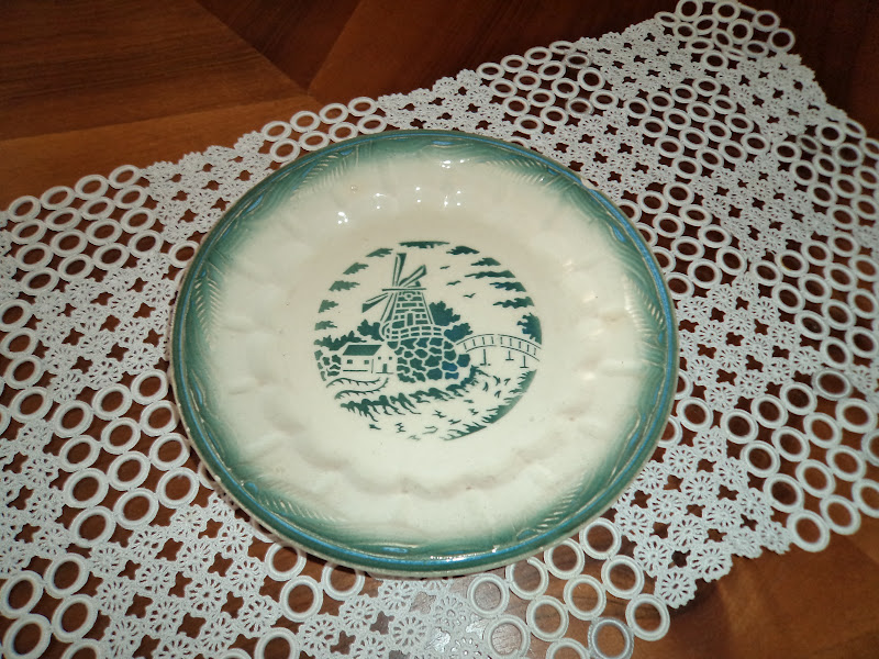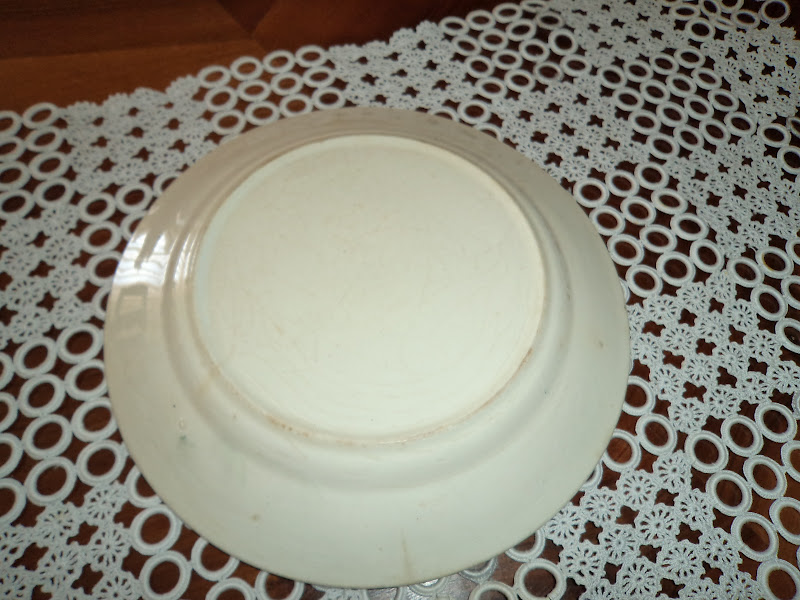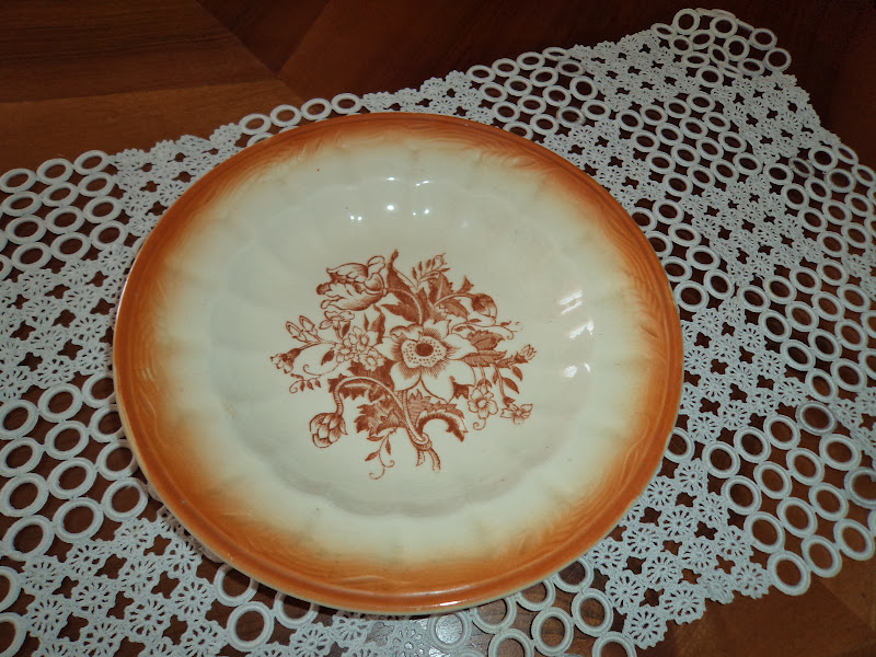 - Os pratos sejam rasos ou de sopa apresentam a aba em conchado côncavo, e no remate da bordadura espigas em relevo alusivas ao pão sob pintura de várias tonalidades: verde ; castanho torrado, azul bebé, cor de rosa ( tenho um com esta cor e sem decoração ao centro, e recordo ver na casa do meu bisavô todos brancos sem estampa só com as espigas).