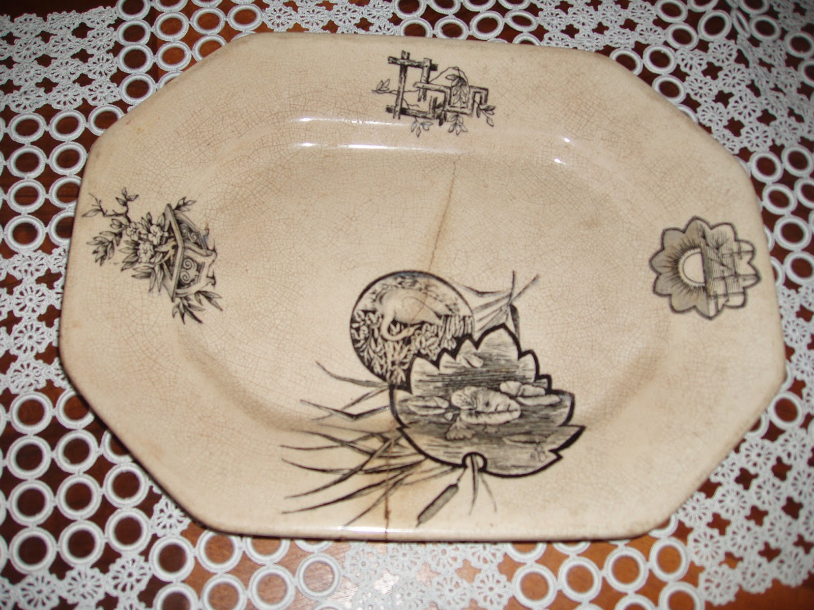A travessa está marcada com o 2º carimbo da fábrica (1863-1870) da Loiça de Sacavém