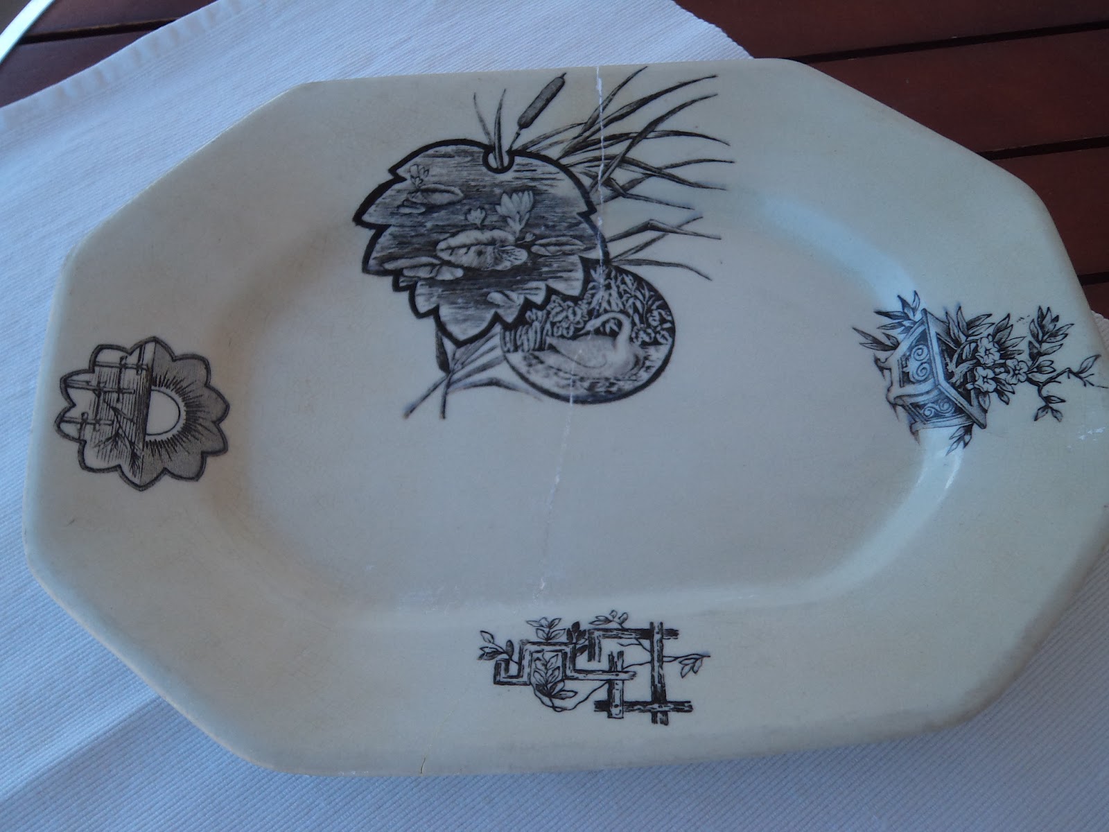 O meu marido encontrou esta travessa na feira da ladra num vendedor ocasional baratíssima porque estava assim...