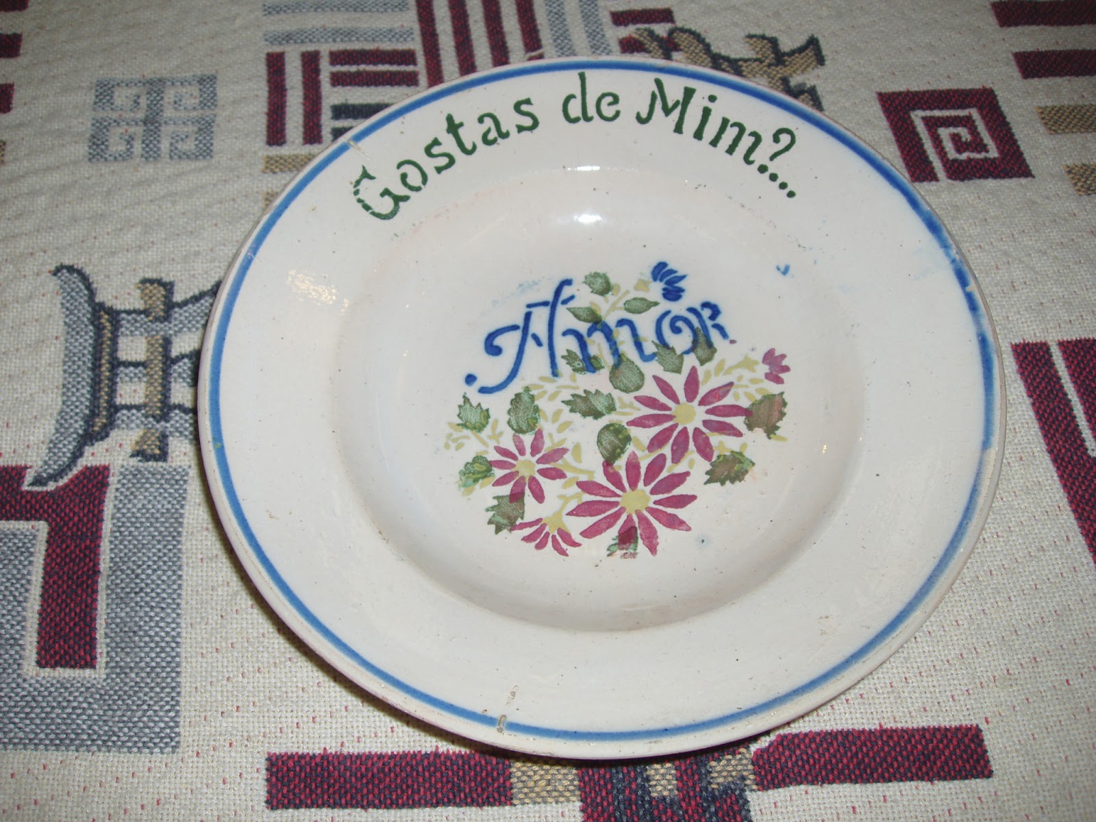 - Na Páscoa na feira de Figueiró dos Vinhos fotografei na banca de colegas de Vila Nova da Barquinha pratos falantes que se não analisasse a decoração, sobretudo o tardoz facilmente ditaria o seu fabrico ser Coimbra.
