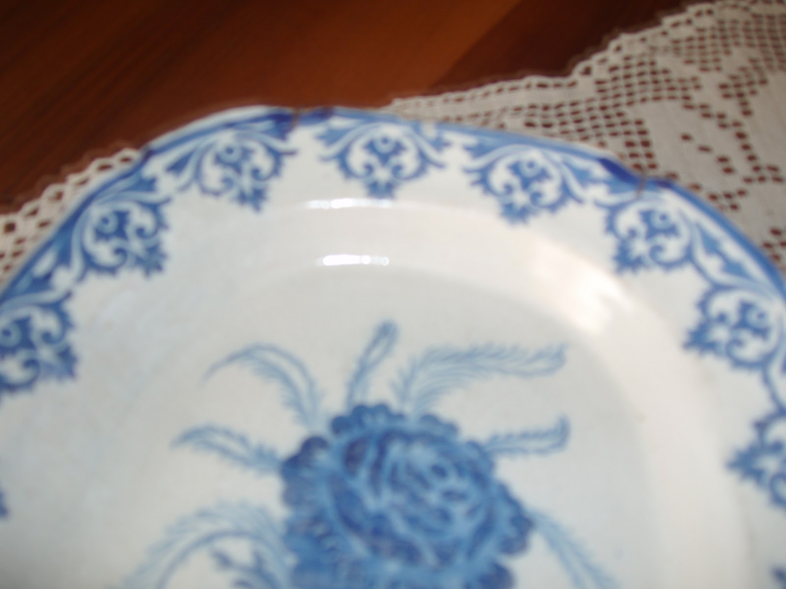 Uma quase certeza ser produção do norte em detrimento de Coimbra (?) pelo vidrado quartejado e pastoso -, apesar de conhecer o prato que mostro abaixo com estas caraterísticas na aba com as letras "C I" seguramente produção de Coimbra no início século XX, numa pintura minimalista, por só metade da barra ser pintada.