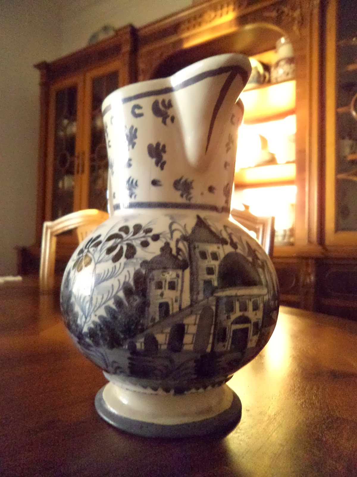 Prato de grandes dimensões mostra semelhanças pelos arcos da ponte, cúpulas...no entanto o seu fabrico é de barro vermelho-, fator que pode evidenciar fabrico de outra fábrica do norte (Gaia ou Coimbra (?) seja pelo esmalte melado brilhante típico de Miragaia de um determinado periodo ou da escola do Brioso (?)