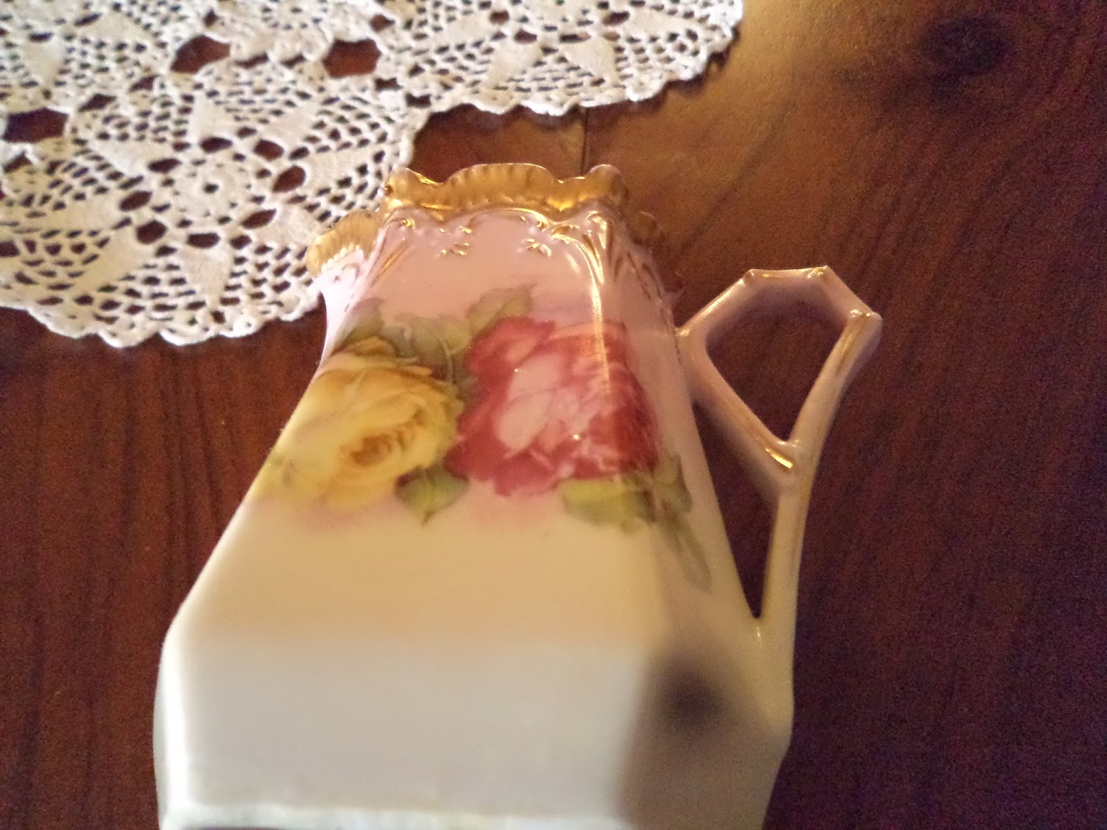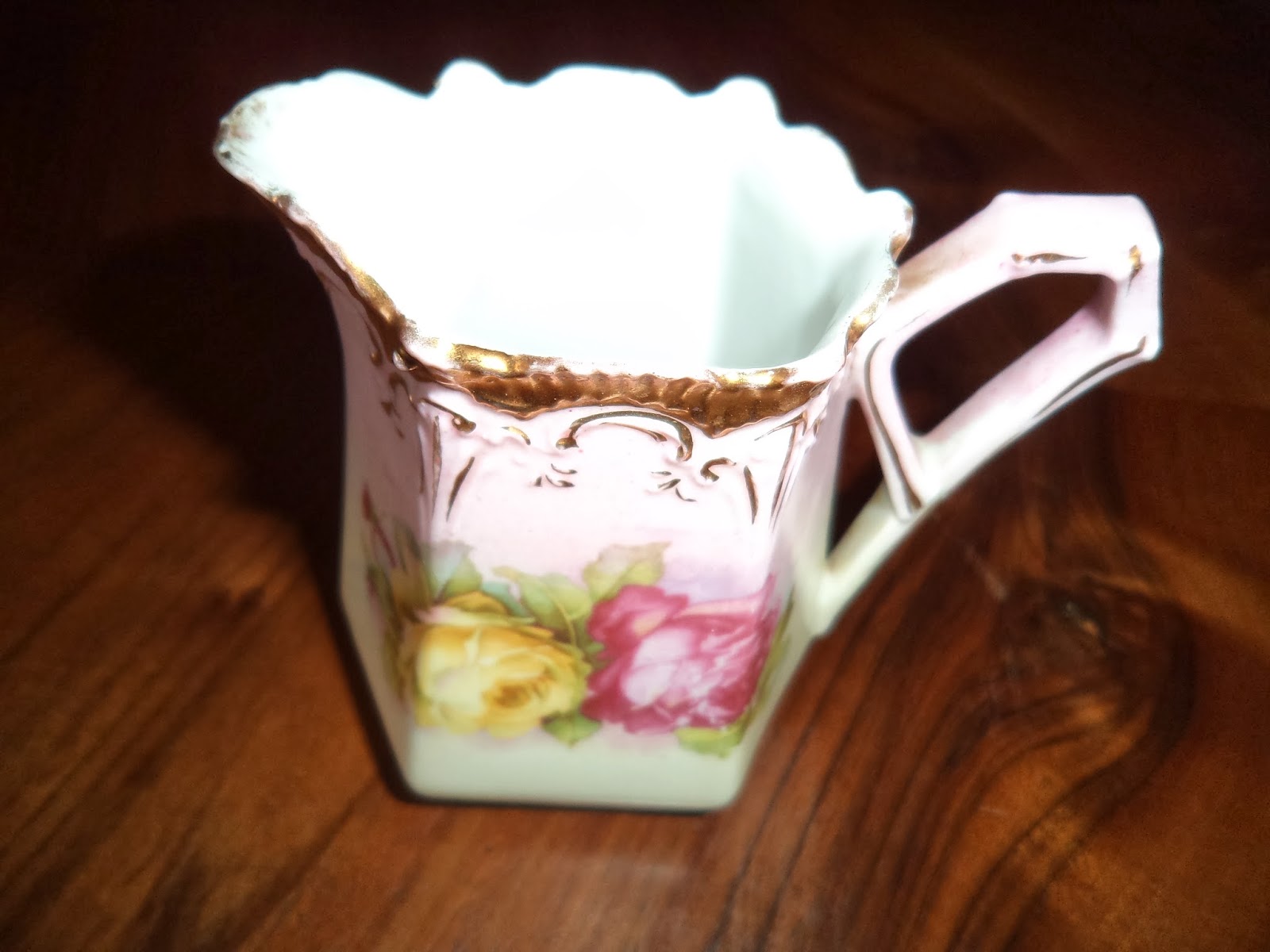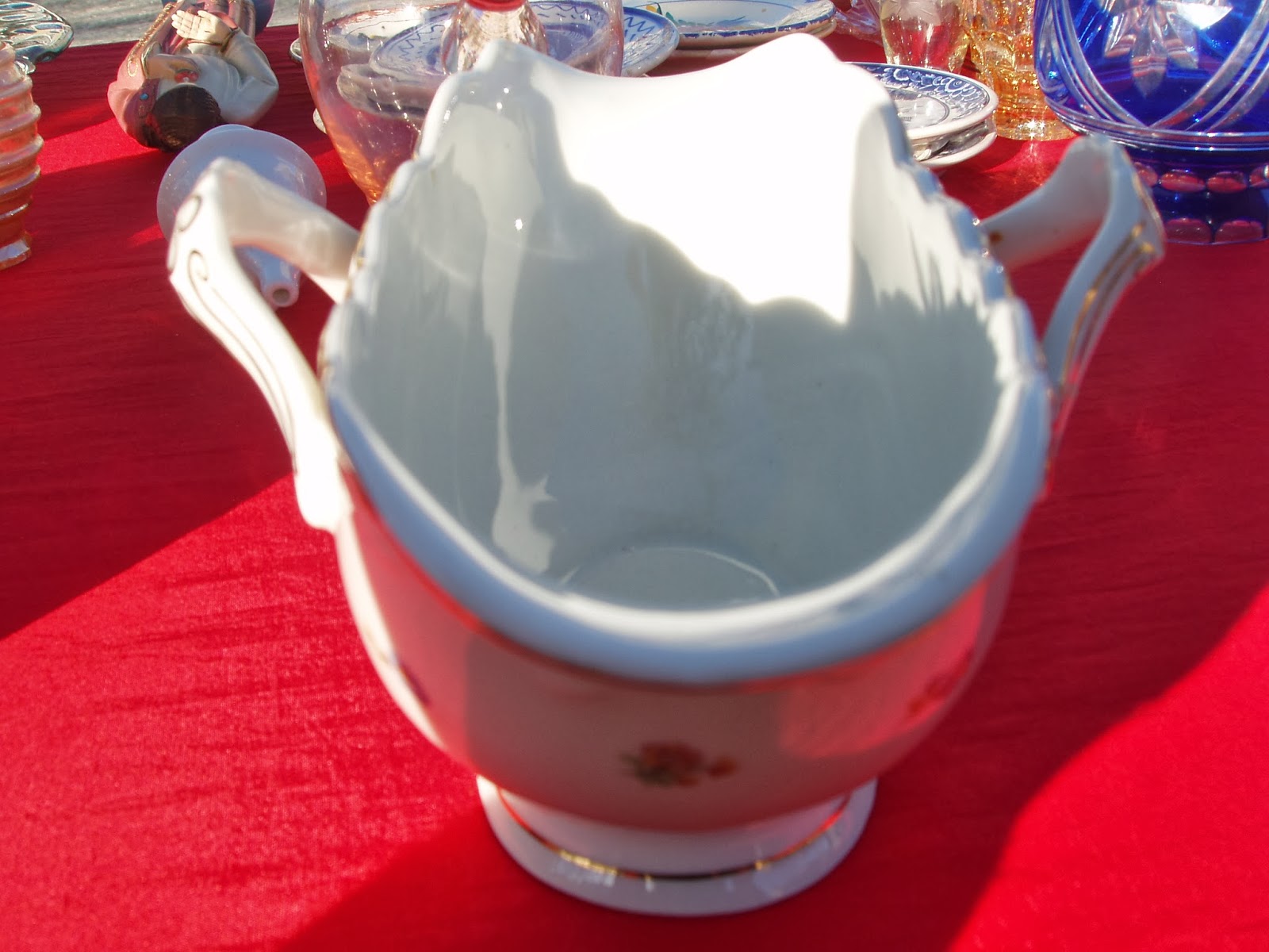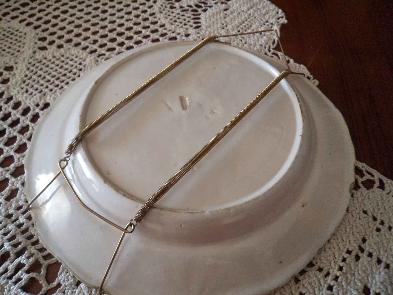 Bacia pode ser Fabrico de Darque ou SAVP(?), extremamente fina, parece porcelana, de pintura transparente no tardoz. Nos achados arqueológicos recentes o motivo a escuro sob estampa em chapa é carateristica da decoração, o mesmo do centro.