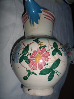 Jarra em art déco em marmoreado, assinada na pasta "V" andava à venda na minha banca-, em Pombal um conhecedor viu-a, e com um sorriso chamou-me à atenção...perdi a imagem do fundo com a marca.