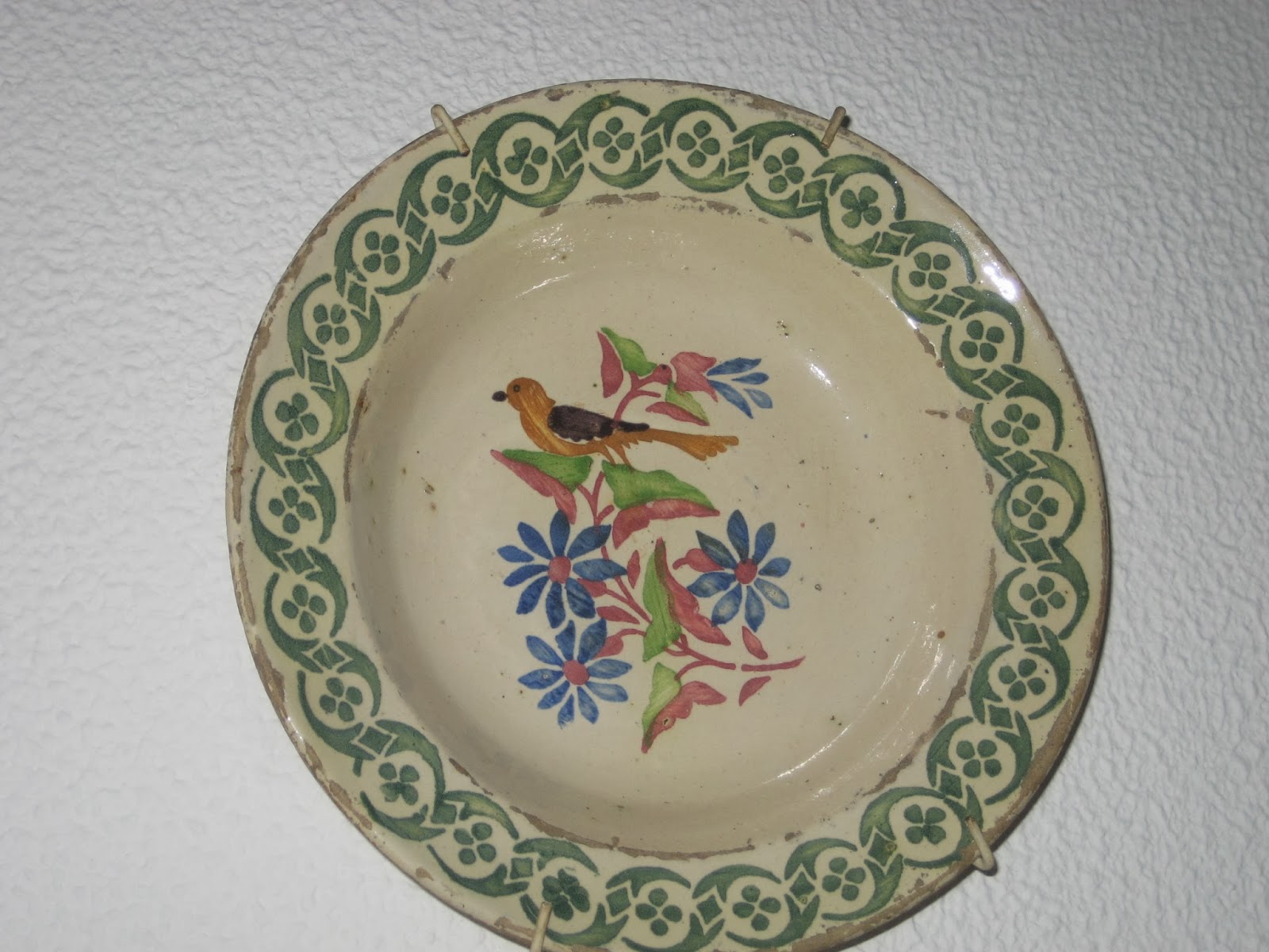 - Este prato foi fotografado na banca de um colega que atestava se tratar da fabrica Bandeira pelo filete largo amarelo canário e pela palete de cores-, pois tive-o na mão, pesado, e pelo tardoz esmalte brilhante, branco, parece se tratar de Alcobaça(?), mas a pargela aventa ser fabrico do norte(?). Ora bom para estudo.