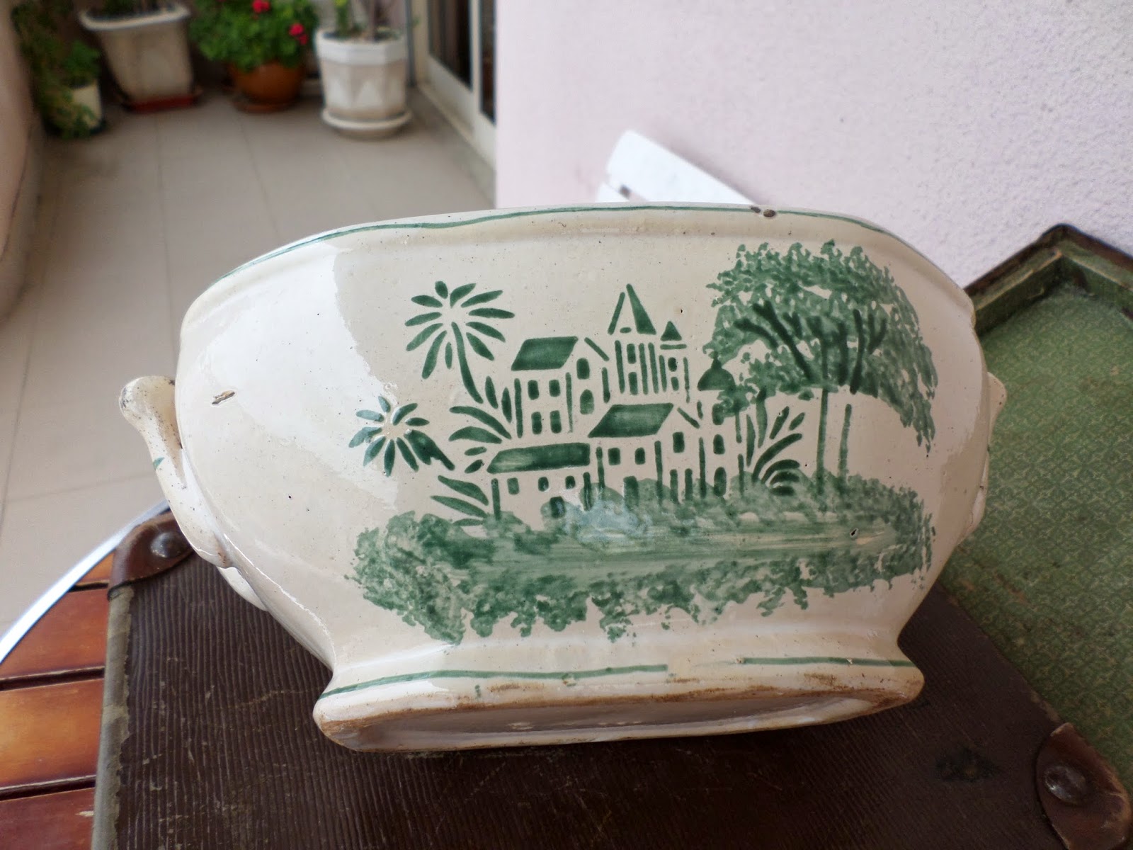 | Uma nota a destacar: nesta terrina o pintor vincou os ramos da árvore e na de cima não |