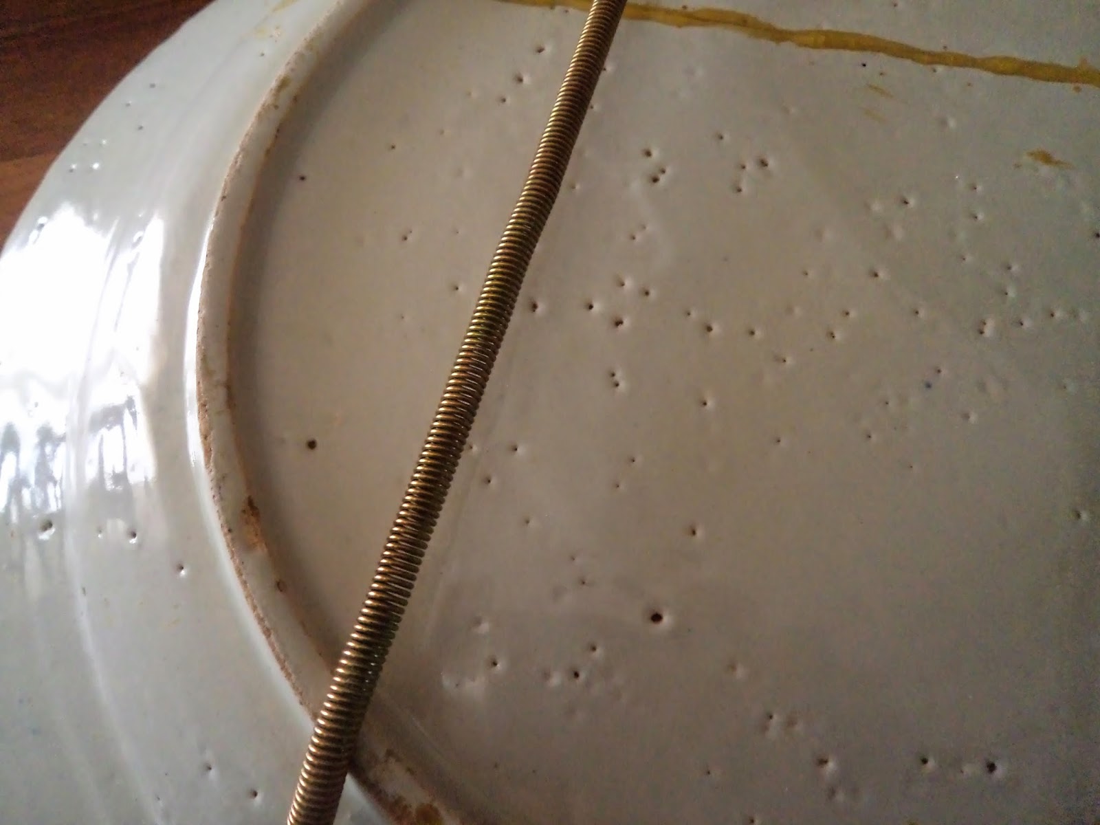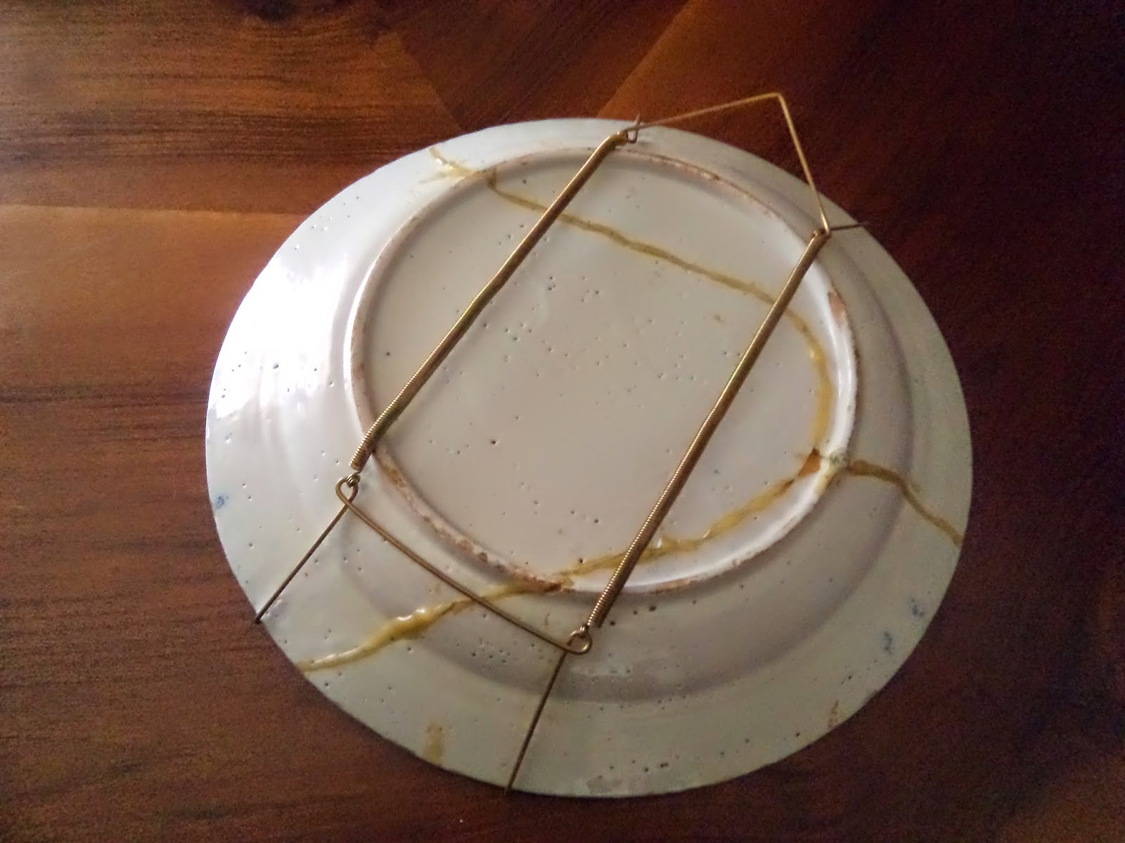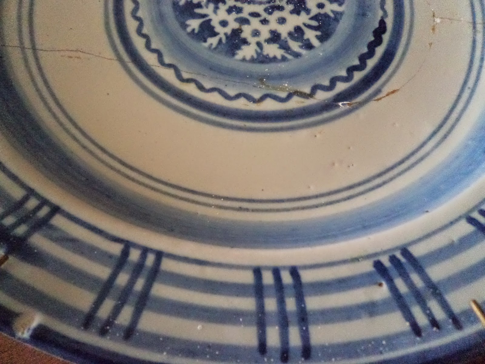 Curiosamente vi um prato de tamanho igual, em que o motivo vegetalista central era igual ao centro deste mas cobria todo o fundo, e a aba não era em reservas sim floral e com o mesmo filete largo em aguada. Uma certeza serem da mesma fábrica, que a vendedora dizia ser Rato(?), da coleção Champallimaud.