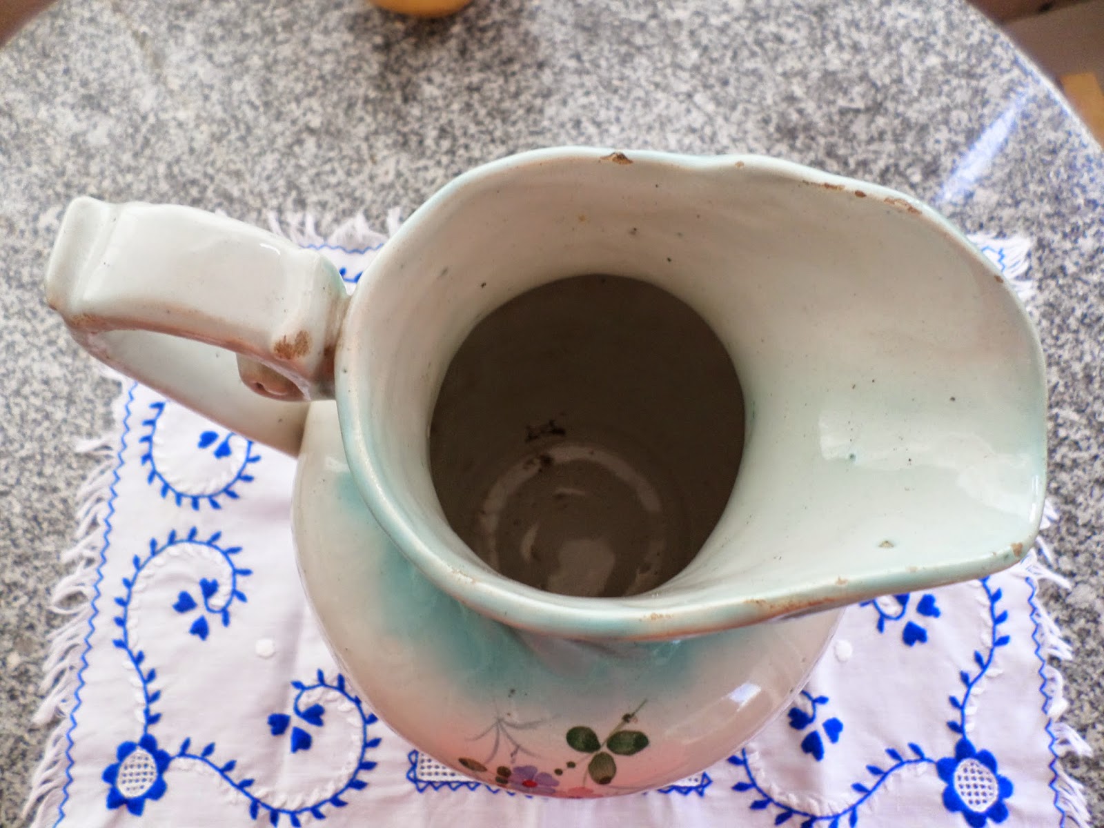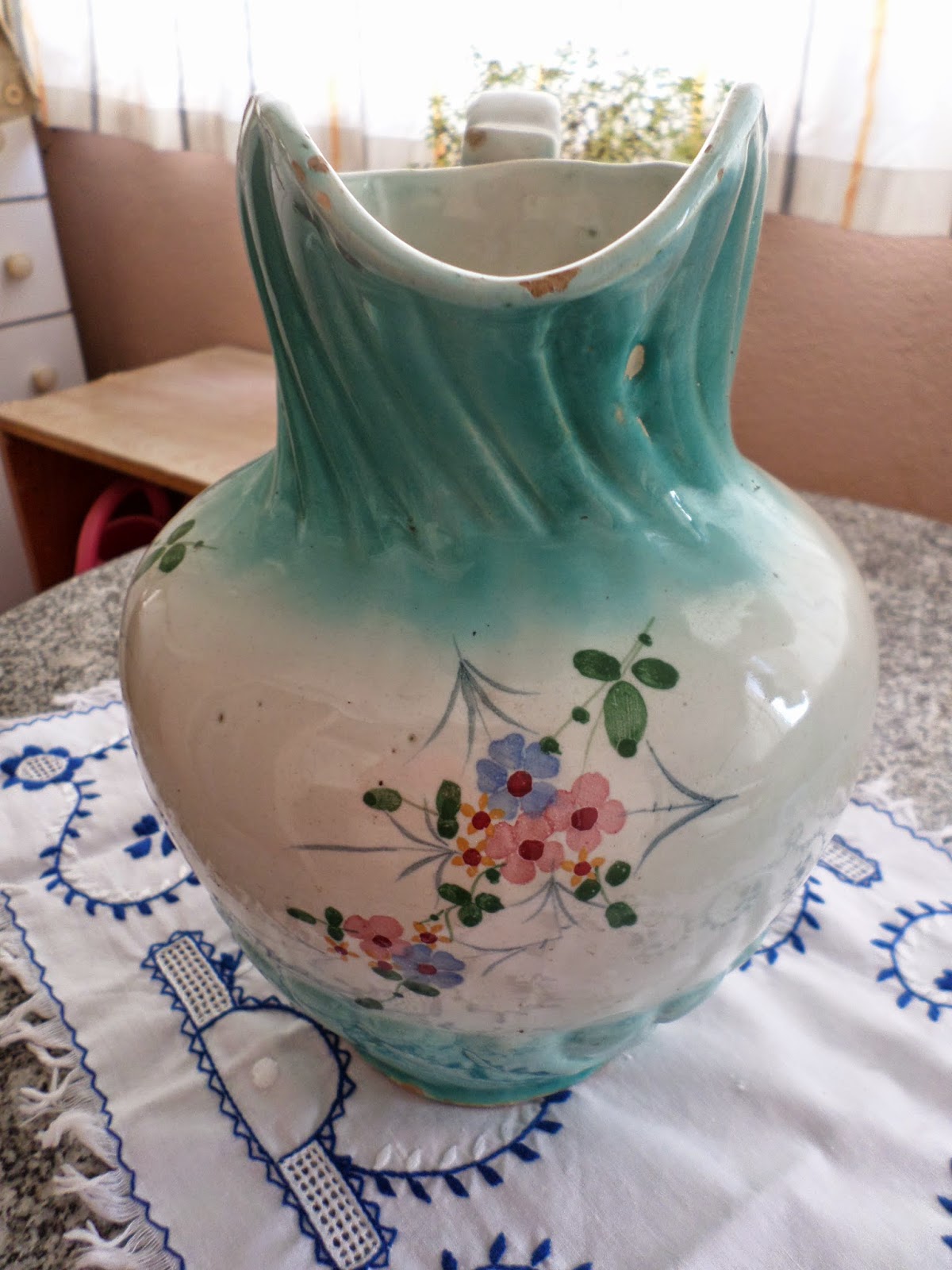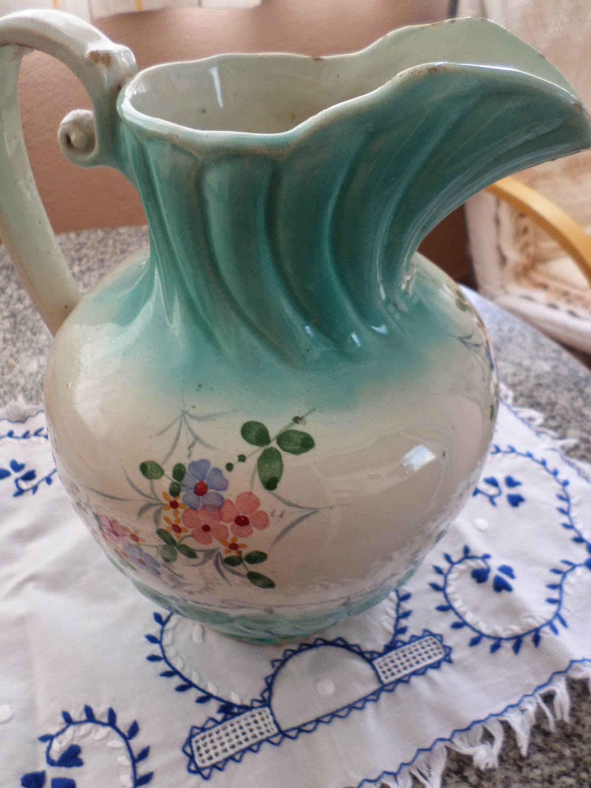 O meu lavatório com a bacia, neste agora nas reservas, nele uma de faiança de Coimbra.