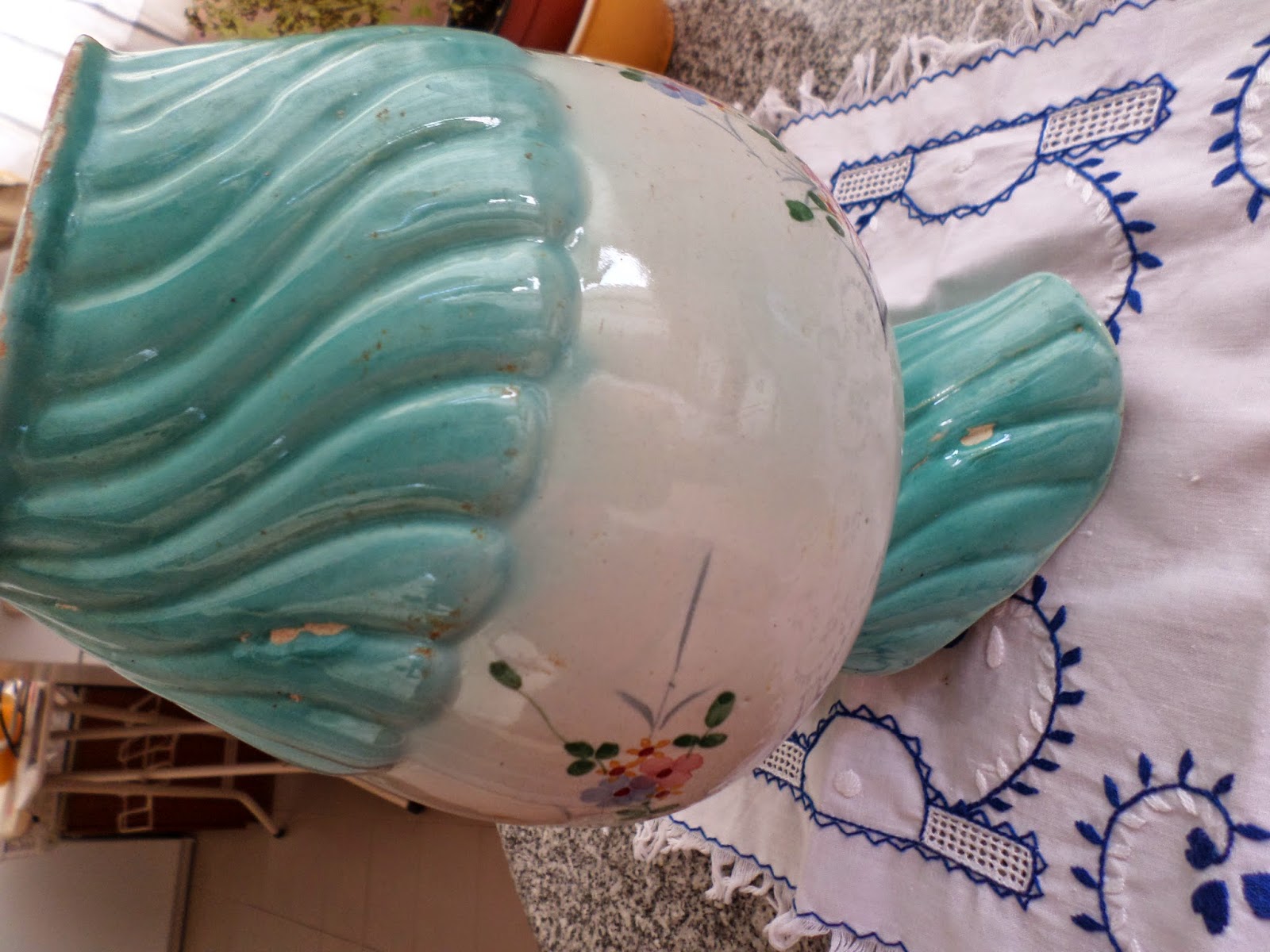 Já a pintura que me atrevo a dizer aos dias d'hoje minimalista pela ingenuidade da pintura floral que se repete o mesmo da folhagem finíssima pontiaguda em cores aguadas a cinzento.