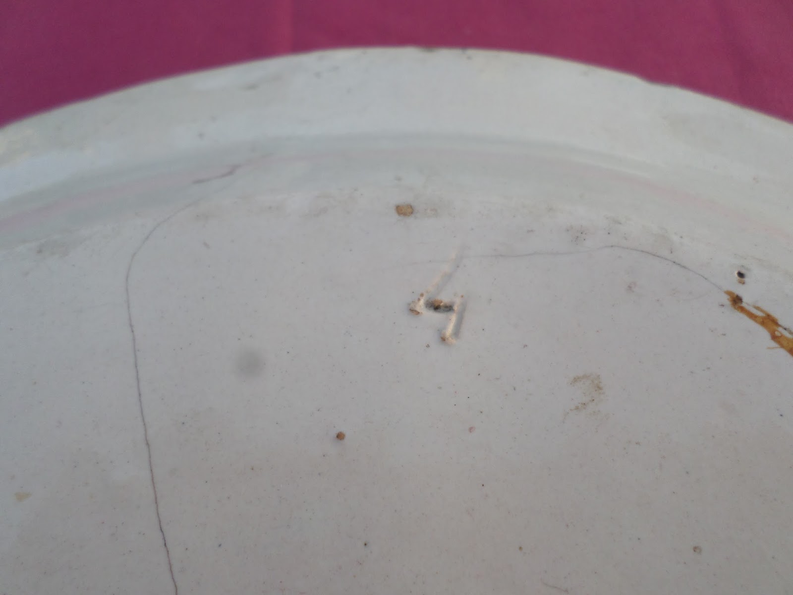 O mais interessante é ter gravado na massa o algarismo "4", que tenho algumas peças numeradas, mas sem saber se o número seja relativo ao tamanho da peça (?) ou à fabrica que além do nome também se identificaria por algarismo(?)