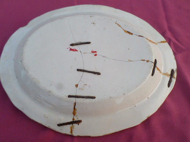 O meu colega Paulinho Filipe, na feira de Setúbal encontrou esta travessa completamente suja que acredito comprou em estaminé de chão. a custo quase zero...apressado se chega à minha banca para perguntar se valia alguma coisa...Passados minutos volta de novo com a travessa lavada que pedi para fotografar, por a achar interessante.