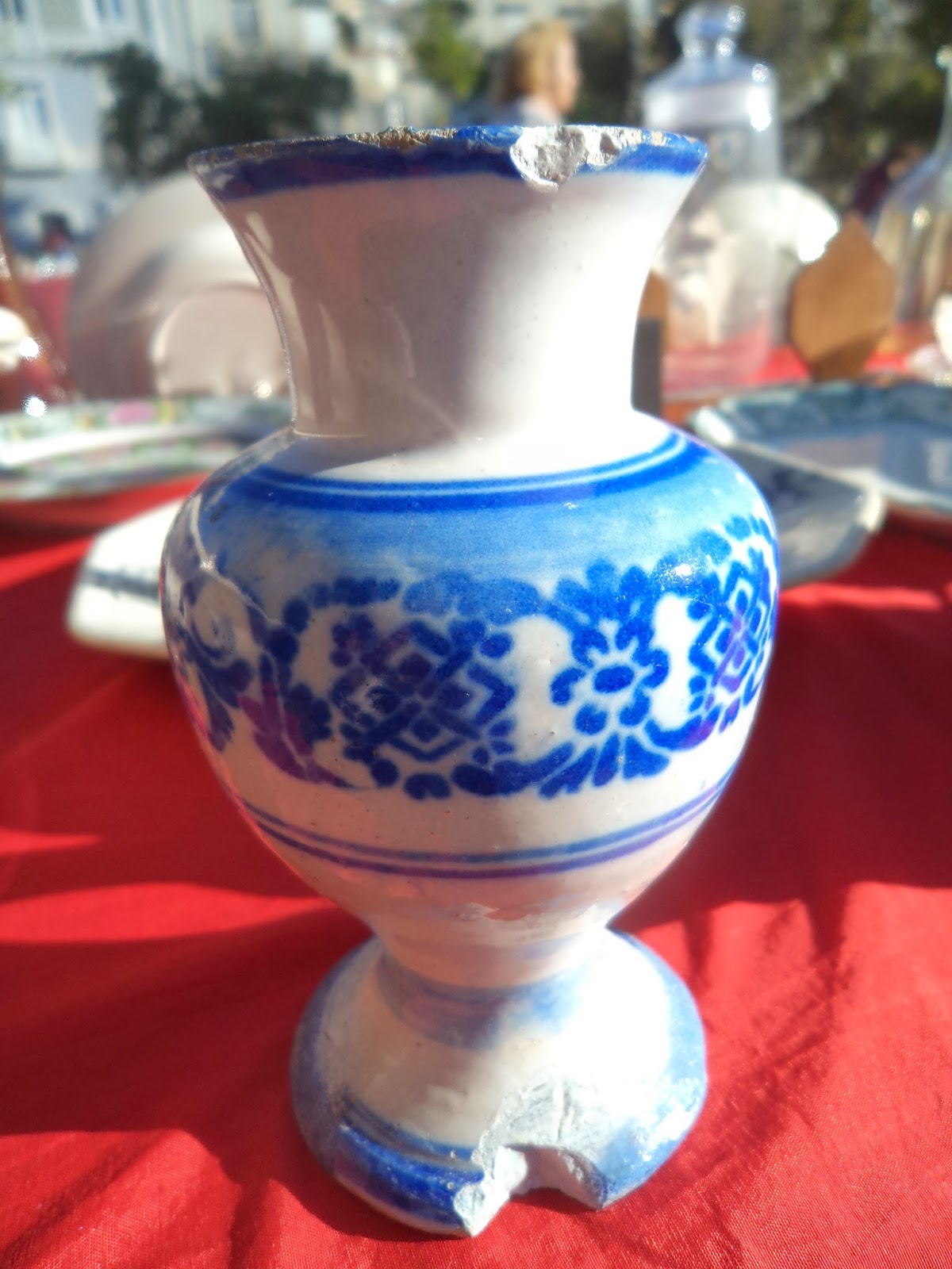 Na minha mente muito viva a vontade de mais alcançar, o maior desafio na temática das velharias que passa por desenvolver olhares sobre a faiança, cerâmica e o vidro, enquanto heranças do nosso passado, sendo muito próprias e nossas, de gosto peculiar, que despertam paixão, pela policromia ou cor monocromática, também pela singularidade, ingenuidade dos desenhos, cores fortes ou desmaiadas, e pela história com estórias que encerram, sem jamais ficar queda ou medo de arriscar a minha visão pessoal, que nada tem de adivinhação, antes pré estudo, pese embora o erro de atribuição sempre presente, porque há muito deliberadamente achei por bem começar a sistematizar: análise de texturas, peso, cores, esmaltes, decorações, pormenores, visita a Museus onde supostamente se deviam encontrar peças bem catalogadas, espiolhando bancas nas feiras, sites de leilões e matriznet , no intuito de melhores certezas, sendo que a certeza, é atribuição sempre rara, no intuito maior seja a certeza de a catalogar norte, centro ou sul. Aspirante sem pretensão a outro mérito que não seja evoluir, a que junto sempre muitas fotos, dicas, ideias simples de apresentação, pormenores de comparação de forma gratuita, no gosto de amostragem do que é realmente nosso ou não, mas neste País veio de alguma forma parar.