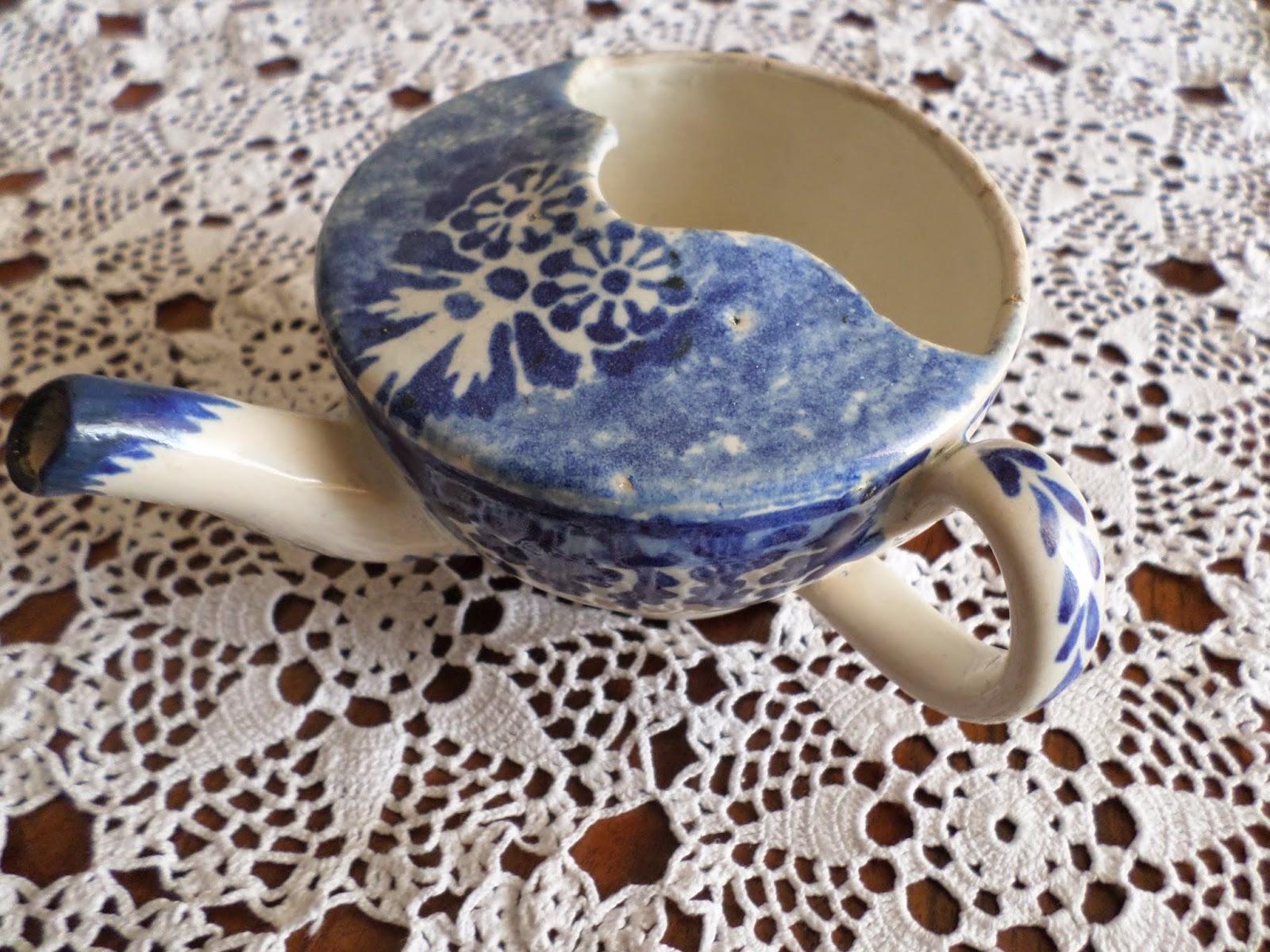 Bule de caldo ou caneca de doentes também atribuído a Miragaia, pela decoração e frete do pé será com muita certeza SAVP ou Vilar de Mouros (?)
