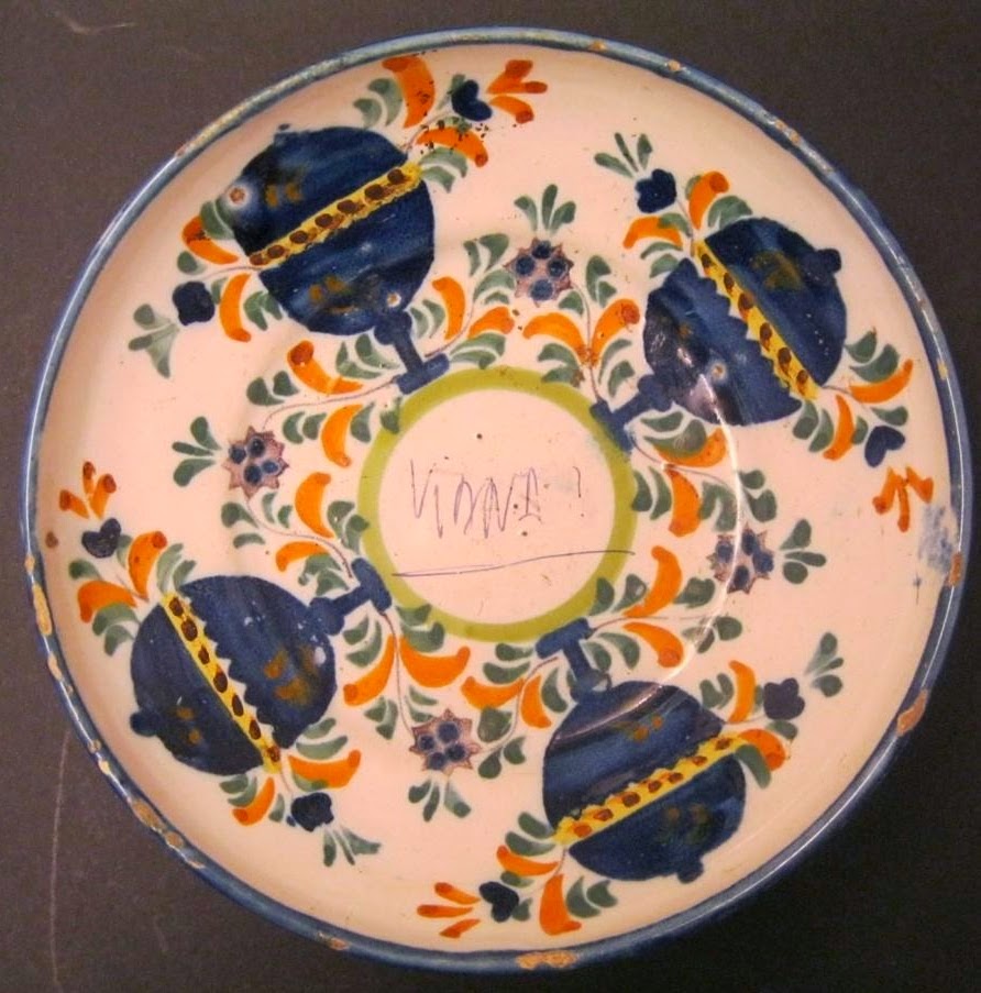 Prato de grande dimensão em policromia atribuído a Darque, pode ser SAVP segundo análise de cores nos fragmentos encontrados na escavação.