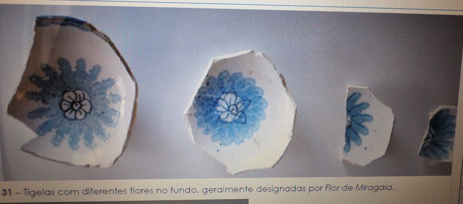 Fragmentos de malgas da escavação SAVP, revelam o baixo frete do pé e os esponjados em azul