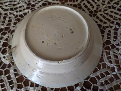 Tardoz de bom esmalte.A foto não reflete o ligeiro amarelo canário que muita faiança Coimbrã se revela em transparência no tardoz, sinónimo da mesma técnica de fabrica de determinada época.