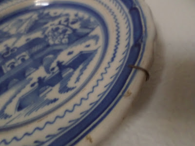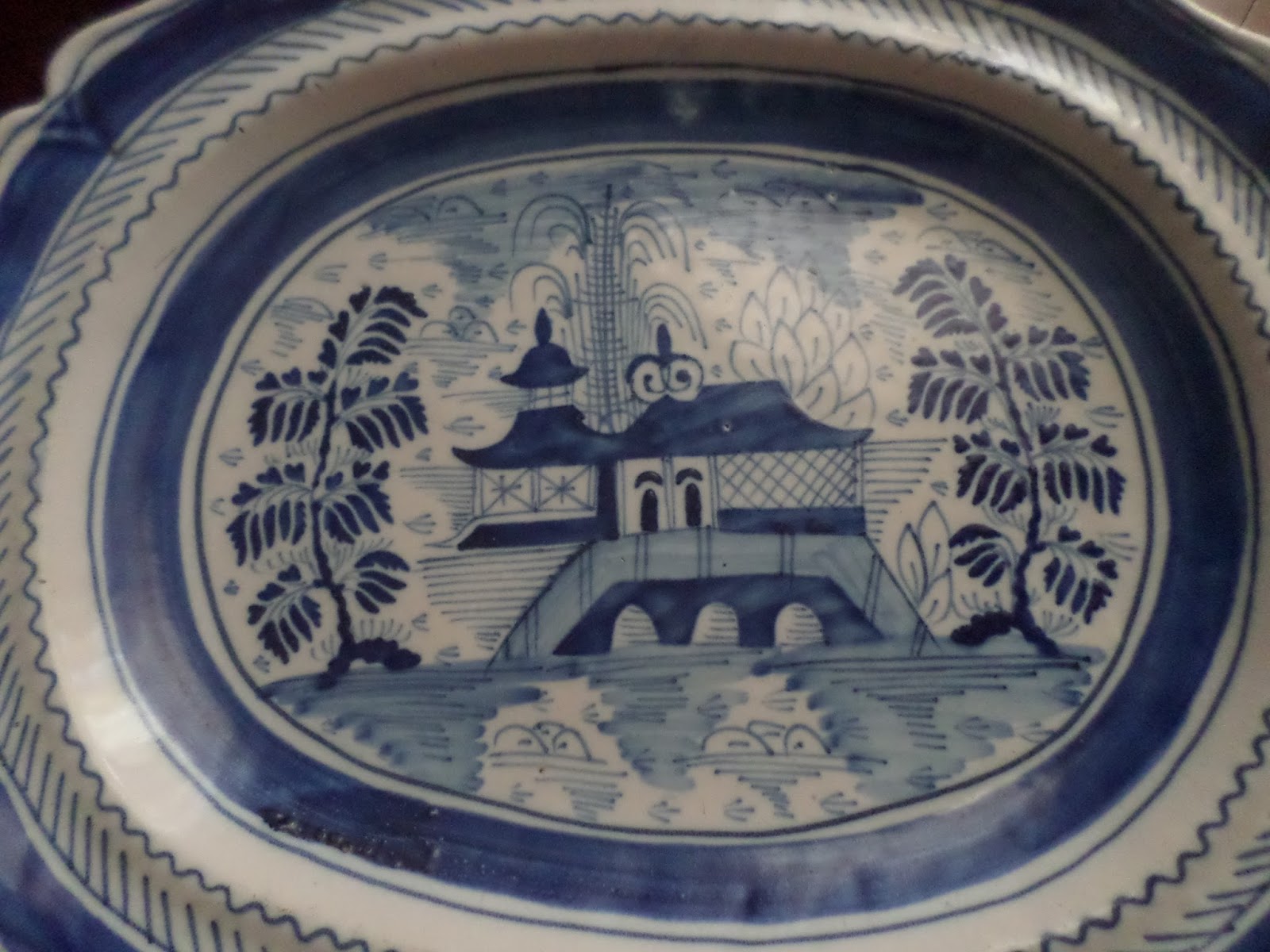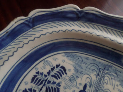 Prato de rebordo em tesoura, contudo difere em três pontos; apresenta um barco de formato igual à ponte com remadores de remos nas mãos, apenas apresenta uma árvore sem ponta do lado direito e é seguramente de fabrico bem mais antigo.