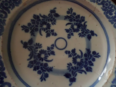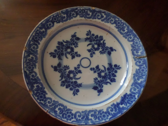 Outro prato decorado diferente do anterior , neste a quadra não tem assinatura, sendo a pintura do azul mais claro, julgo seja de fabrico posterior ao primeiro (?).