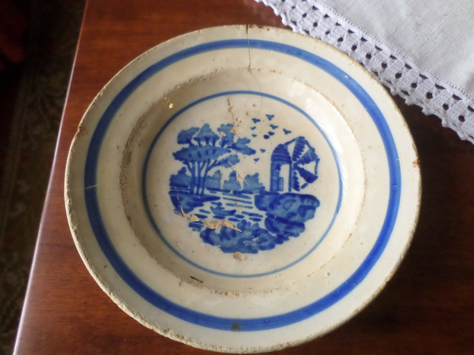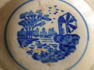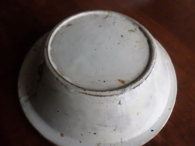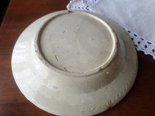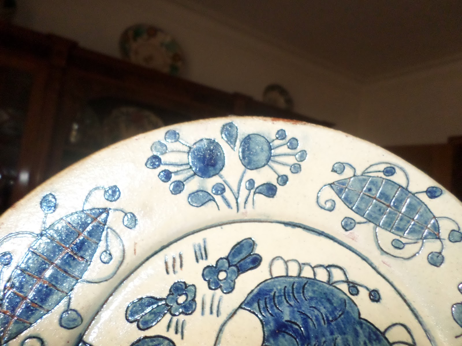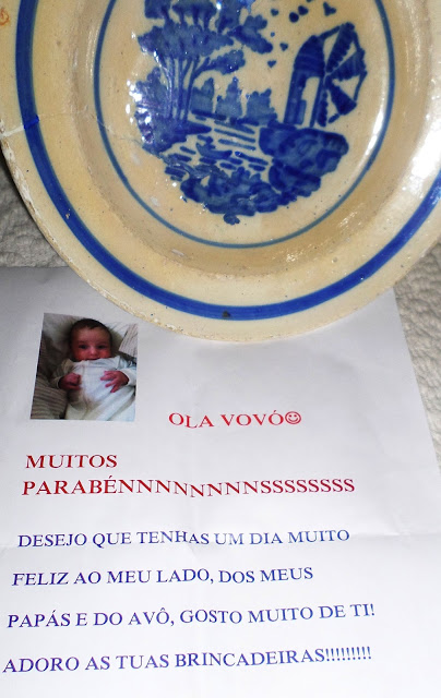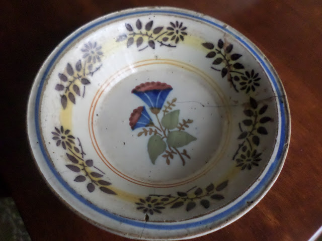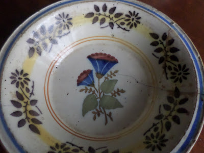 Encontrei este prato de faiança na feira de velharias de Figueiró dos Vinhos na Páscoa. A vendedora disse-me que já tinha vendido os melhores só restava este, frágil, cheio de mazelas, gostei da história que era dum tio padre para os lados de Coimbra.